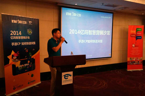 2014年5月29日,2014億瑪智慧營銷沙龍在深圳市成功舉辦。會議圍繞“手游CP如何快速突圍”展開,眾多業內專家一起就手游市場發展現狀、問題及解決之道進行了集中探討。億瑪在線副總裁秦令今表示,手游CP要想在激烈競爭中實現突圍,做好移動網絡推廣才是王道,而大數據將成為提升移動網絡推廣效果的根本支撐。